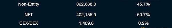 这些通过铸造NFT筹集到的ETH流通到非实体钱包的数量已经从之前报告的52.3%下降到目前的45.7%。排名靠前的非实体钱包包括了ETH百万富翁、使用过EIP1559的钱包、NFT收藏家、重度去中心化交易所交易者和一些私人钱包。
