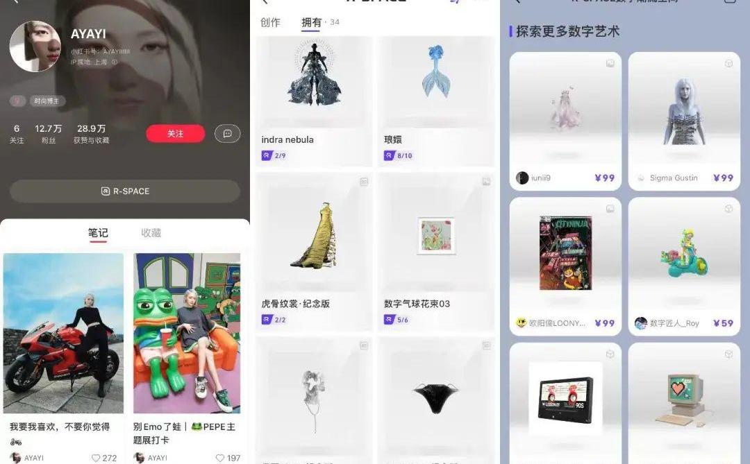 还有一直在追求“电商梦”的小红书。去年起,小红书开启“潮流数字时代”计划,先后邀请超写实虚拟人LilMiquela、AYAYI、Reddi,以及国风虚拟偶像翎Ling等虚拟人入驻小红书,虚拟人生态进一步扩大。今年上半年,小红书正式上线数字艺术平台R-SPACE,支持用户直接在小红书上购买NFT,并在个人主页展示自己的藏品。
