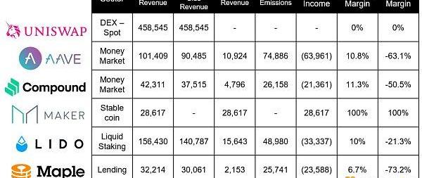 让我们来看看过去六个月中Uniswap、Aave、Compound、Maker、Maple和Lido六种市场领先的蓝筹DeFi协议的盈利能力,并深入探讨更广泛的影响。