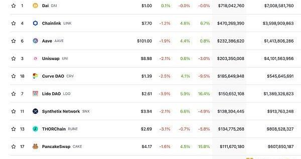 DeFi项目锁定资产前十排名及锁仓量数据来源:defillama