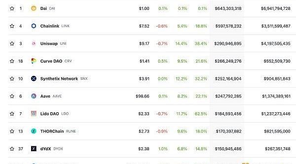 DeFi项目锁定资产前十排名及锁仓量数据来源:defillama