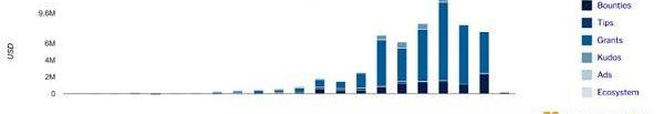 每个季度,Gitcoin社区都会将价值300万美元的资金分配给一个匹配池,根据众筹活动的结果进行分配。在2022年第二季度,Gitcoin促成了740万美元的价值转移。