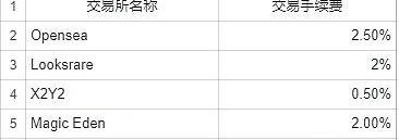 先说交易手续费,Opensea作为具有垄断地位的龙头交易所,收取了行业内最高的2.5%的交易手续费,也基本为后来者设定了一个手续费收取的上限,作为后来者的Looksrare和X2Y2都设定了较低的交易手续费以此来争夺市场,并且市场上还有很多类似于Alienswap这样的交易所打着0%交易手续费的旗号加入到这场价格战中来。