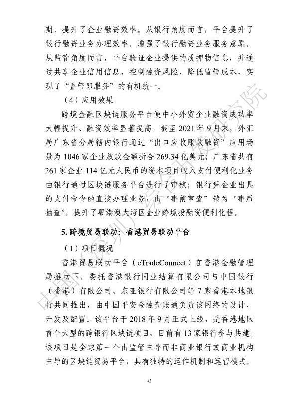 《区块链金融应用白皮书》在京发布,列举10个金融场景:4月2日,由京东金融研究院和工信部下属中国信通院云计算和大数据所共同撰写的《区块链金融应用白皮书》(以下简称白皮书)在京正式发布。“区块链不等于币圈。技术是中性的,关键看应用的领域和场景。”京东金融研究院院长孟昭莉认为,“如果没有真实的应用场景,区块链技术将失去生命力。”而在金融场景中,区块链技术不仅有广泛的应用空间,而且已经有不少探索实践。在白皮书所列举的10个金融场景中,大都存在参与节点多、验真成本高、交易流程长三类共同特性,并因此造成业务的效率低、信用风险较高等问题。区块链的分布式记账、不可篡改、内置合约等特性可以为金融业务中的痛点提供解决方案。[2018/4/2]