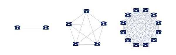 座机的普及就是一个典型的网络效应:一台座机毫无价值,但网络中每增加一台新的座机,整个网络的利用率也会随之上升。一台座机就相当于一个节点,随着节点的连接性不断提升,网络的利用率也会随之上升。同样地,社交网络中的用户数量越多,它为用户提供的服务价值也就越高。另一个网络效应的案例就是VISA这类支付平台或者Uber这类打车平台。用户数量越多,网络价值就越高。
