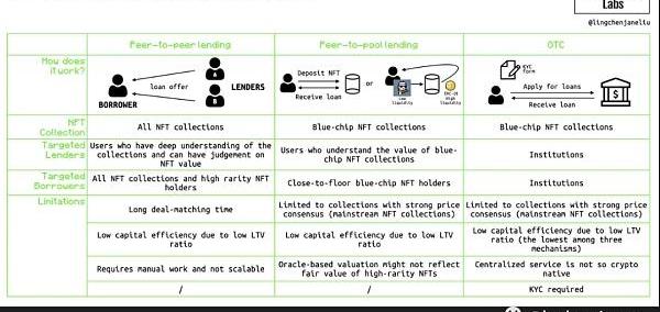 在NFT贷款协议中,有三种机制促进NFT作为抵押贷款:a)点对点(p2p)贷款、b)点对池(p2p)贷款、c)场外(OTC)贷款。由于当前形式的非流通性强,非流通性持有者正在寻找提高资本效率的解决方案。非金融借贷协议已经成为解决这一问题的热门方案,并在最近取得了进展。