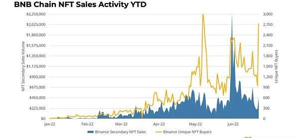 与滞后的DeFi行业不同,2022年是BNB链NFT行业爆发的一年。NFT二级销量和独特的NFT买家都呈指数增长。尽管整体市场相对低迷,BNB链上的NFT活动仍显示出强劲势头。