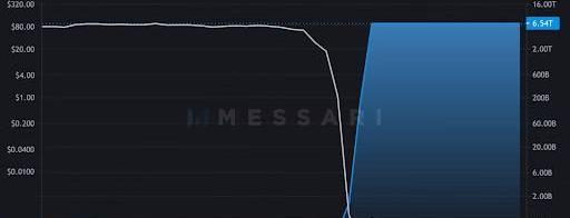 由于投资者们陆续地卖出UST,所以铸出的Luna越来越多。这造成了Luna的供应在一天内快速膨胀的恶性通货膨胀事件。JimmySong发推文实时报道Luna的恶性通货膨胀情况。结果,Luna的供应在一天内从7.25亿左右膨胀至6.9万亿,或者说几乎增长了1,000,000%。