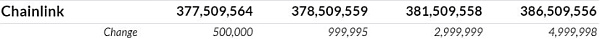 LINK第三季度的自由流通量供应增加了500万枚,比上一季度增加了200万枚。自由流通量供应的增加可归因于来自团队确定地址的交易。这是团队地址在近一年中套现最大的一个季度,但还是小于2019年第三季度团队地址撤出的数量(1260万枚LINK)。