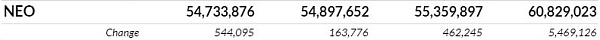 NEO第三季度的自由流通量供应出现有史以来最大的增长,有550万枚NEO进入流通市场。来自基金会拥有和控制的地址的NEO持有总量为4190万枚,本季度共流出540万枚。其中,大部分已被发送到与NEO的新DeFi应用程序Flamingo进行交互。另外,本季度从团队确定的地址中流出的NEO数量为5万枚(已发送到交易所地址)。