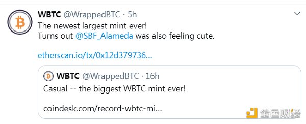 据WBTC消息,Sam Bankman-Fried旗下加密货币交易公司Alameda Research成为最新一个铸造WBTC代币数量最多的铸币商。
