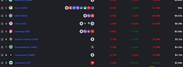 DeFi项目锁定资产前十排名及锁仓量数据来源:defillama