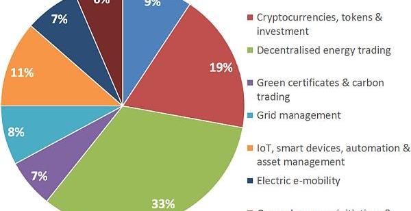 最近发表在ScienceDirect的一项研究表明,大约三分之一的用例与去中心化能源交易相关,其中包括批发、零售和P2P能源交易计划。第二个最受欢迎的类别是加密货币、代币和投资,占五分之一的用例。其次是物联网、智能设备、自动化和资产管理,以及会计、计费和安全,分别占总用例的11%和9%。其他项目占总数的6-7%: