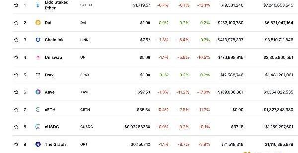 DeFi项目锁定资产前十排名及锁仓量数据来源:defillama