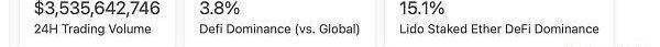 2.过去24小时去中心化交易所的交易量:35.35亿美元