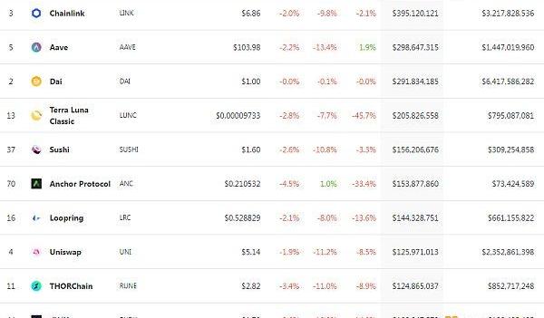 DeFi项目锁定资产前十排名及锁仓量数据来源:defillama