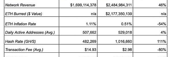 这些数据比较了以太坊在2021年第一季度和2022年第一季度的表现。