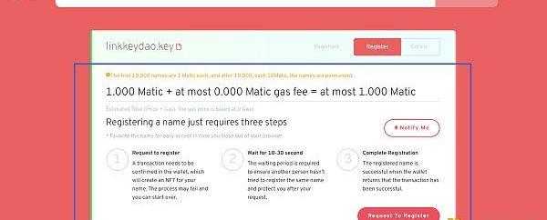 注册费目前为Matic,即将支持KEY、TRX、BNB、USDT和其他主流代币,我们将使用DAO工具来管理注册费,最初由团队和投资者作为DAO成员管理。