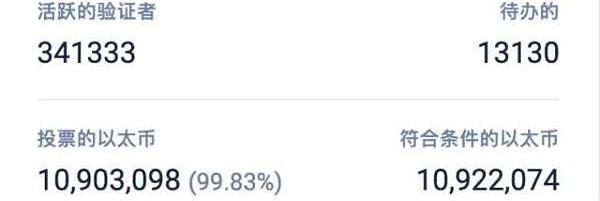 截至4月12日,信标链运行平稳。链上数据显示,信标链已拥有34.13万个节点,累计质押总额约1090.46万ETH,其中有效投票参与率达99.84%。自2021年10月15日至今,节点数量和质押总额稳步增长,每日验证者收入也在缓慢增长中。