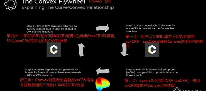 Convex我们的基本产品允许CurveLPs将其在平台的LP代币,存款人可以获得更高的收益,作为回报,Convex收集CRV的采矿成本百分比,然后支付给cvxCRV持有人。此外,采用Convex挖出的CRV之外的5%与cvxCRV以CVXPledgor的形式。这就形成了下图中的飞轮。