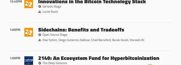 4月8日主会议议程包含:比特币宏观经济格局、开源阶段讨论、可再生能源挖矿、比特币社区、机构基础设施、萨尔瓦多故事、比特币倡导项目、硬件钱包、资助比特币开发者、ESG、比特币年度状态、闪电支付、美国宪法与比特币、隐私、技术栈创新、侧链等。