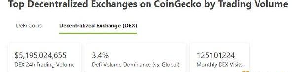 2.过去24小时去中心化交易所的交易量:51.95亿美元
