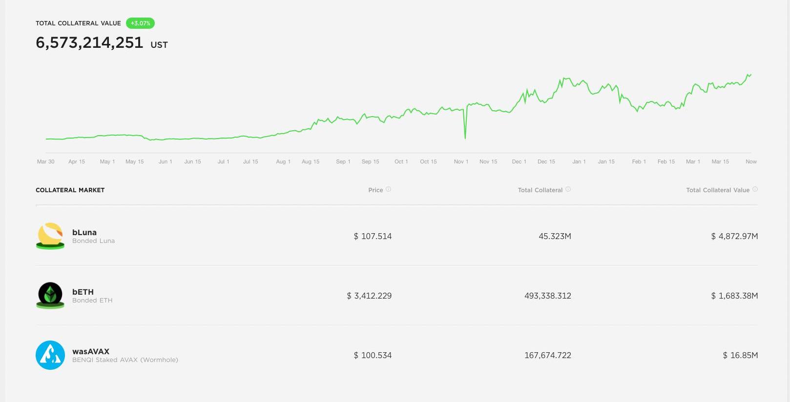我们依据Anchor仪表板中的数据进行了估算,可以得出目前三种抵押物每日的收入约为/365,约等于110万UST。