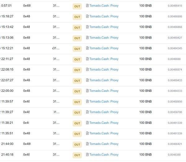 另一个黑客地址是以10BNB为单位转到了Tornado.Cash。