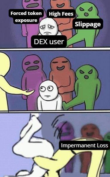 值得注意的是,AMM不会根据周围的其他市场改变其价格。池内资产的价格仅随着准备金比率的变化而变化。这会在不同AMM的资产价格之间产生差异,从而产生套利机会。这些错误定价事件通常被机器人收集起来,但对于热心的投资者来说,鲜为人知的基于AMM的DEX上仍然存在机会。虽然AMM在过去几年中取得了令人难以置信的成功,但它们也有自己的缺点。?