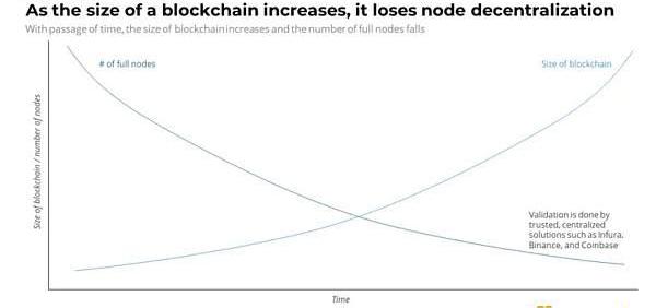 传统的区块链在存储不断增长的数据方面效率低下。这种状态膨胀问题会对网络的去中心化产生负面影响,因为能够参与链验证的用户更少。