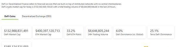 1.DeFi代币总市值:1329.88亿美元