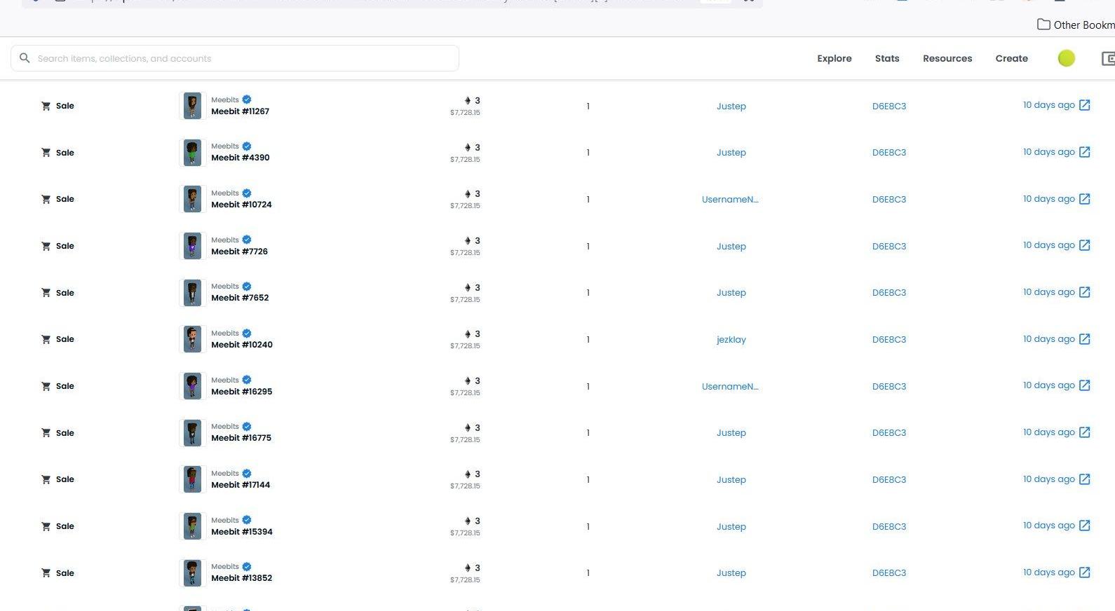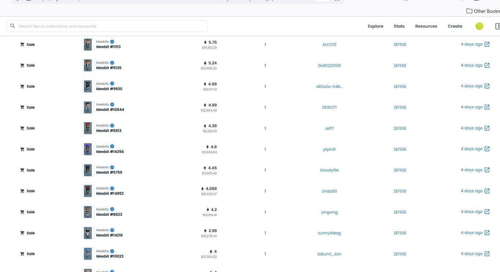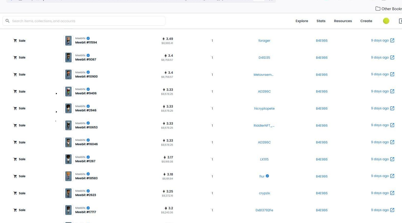还有其他一些「聪明」的业内人士,在收购公布前就使用新的钱包来购买大量Meebits,包括: