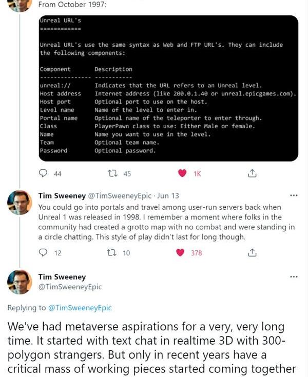 最后,元宇宙与Unreal,Unity,或者WebXR,WebGPU这样的工具不同,这就像TCP/IP,HTTP,网页浏览器是互联网依赖的协议,赋能互联网的软件,并不能与互联网对等。