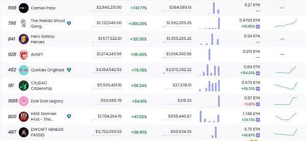 24小时内销售涨幅前十的NFT数据来源:NFTGO