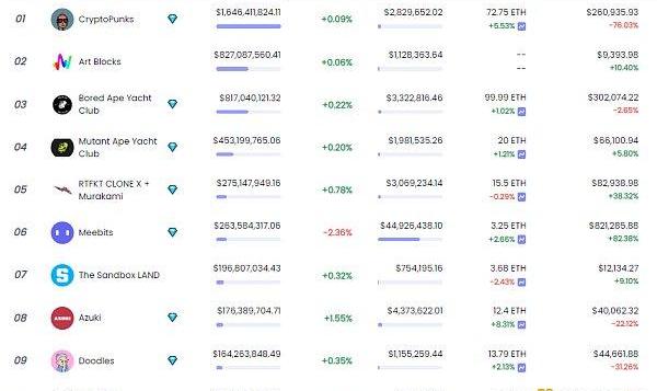 NFT总市值、市值排名前十项目数据来源:coinmarketcap