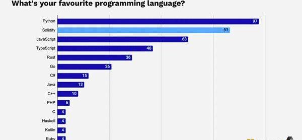 在「最喜爱的编程语言」票选中,Python成功击败Solidity「反客为主」,获得了22.7%的受访者青睐,其次是Solidity、JavaScript、TypeScript和Rust。