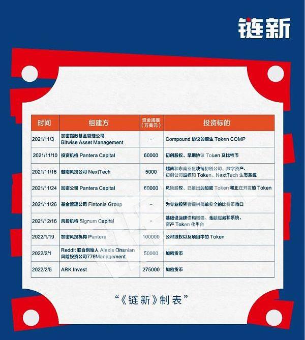据《链新》观察,自2021年起,加密领域的各大风投、基金、交易平台、货币平台等主体纷纷组建新基金,帮助加密世界的创业公司及个人解决资金问题。《链新》统计,自2021年10月1日至2022年2月7日,全球新组建加密基金数量高达108只,资金规模超过376.52亿美元。