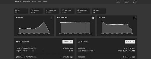 每一个区块链都需要有一种让公众来监控交易、地址、区块和网络统计数据的方式——ViewBlock作为permaweb的主要区块探索器,为Arweave提供了这个方法。为了监测货币交易目前是否已经被开采成区块,或者SmartWeave合约互动是否失败,都可以通过使用ViewBlock来将它们轻松解决。在此你还可以获得区块链的总规模、每日交易数量、节点位置等统计信息。