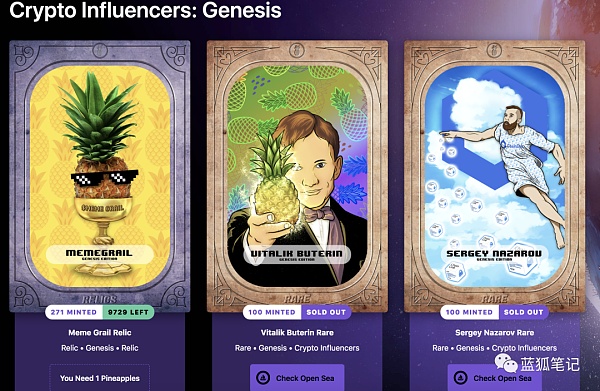 当用户赚取足够的菠萝积分后,可以自行选择自己喜欢的NFT进行兑换。