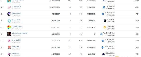 过去24小时去中心化交易所的交易量数据来源:coinmarketcap