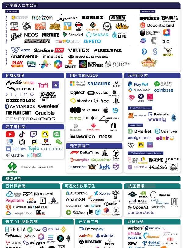 2021年,Newzoom.com发布了“元宇宙生态图”。我们将图谱附在此处,供各位读者参考: