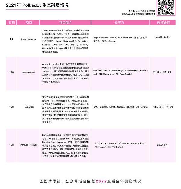 而据不完全统计,在2021年对波卡生态繁荣具有重要意义的全球范围融资有72次,其中披露金额48次融资总共筹集了约3.6亿美元。并且这些融资大多数密集的发生在下半年,很多优质项目获得了多轮融资。