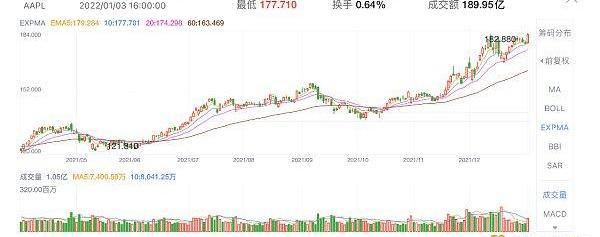 之所以强调“触及”,是因为苹果在盘中达到182.88美元历史新高后小幅回落。截止收盘,收涨2.50%,每股182.01美元,对应市值2.99万亿美元。