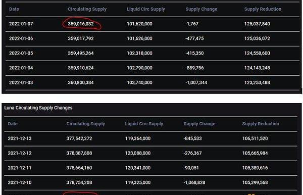 3、结果是:LUNA循环供应因燃烧而显著减少,5%代币供应在1个月内燃烧。