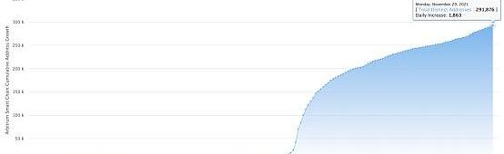 Arbitrum每日新增钱包数也持续上升,达到每日新增186条,总钱包地址达到291876条。