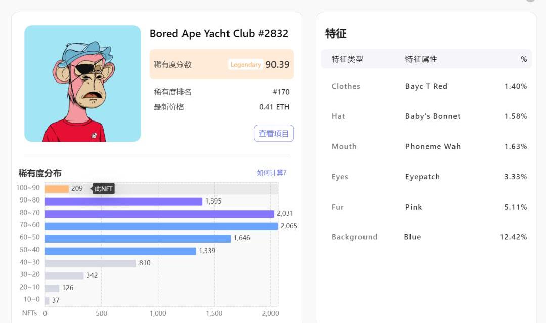图7:NFTGO针对BAYC#2832的稀有度评分细节)