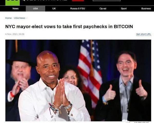 据今日俄罗斯电视台11月5日报道,新当选的美国纽约市市长埃里克·亚当斯承诺,将使用比特币领取就任这一职位后的前三份薪水,以兑现他让纽约成为“加密货币行业中心”的承诺。