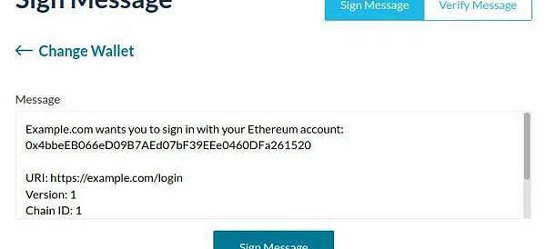 EIP-4361描述了使用签名消息的现有web2服务的身份验证方法。用户可以使用自己的私钥(带有相应的地址)进行身份验证,而不是使用用户名和密码的组合。例如,可以使用自己的私钥对这样的消息进行签名: