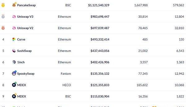过去24小时去中心化交易所的交易量数据来源:Debank