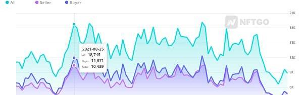 而NFT生态总体数据表现却并不那么亮眼。Nftgo最新数据显示,整个NFT生态交易人数在今年8月25日达到阶段性高点的1.87万人之后开始下降,目前24H活跃交易人数不到0.9万人,下降幅度超过50%。